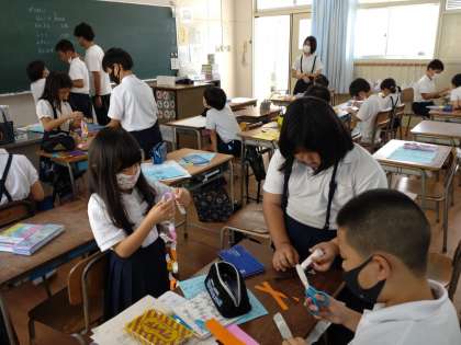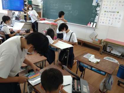 明日に向けての準備をしています。職場体験の中学生も応援してくれています。