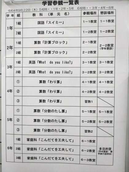 9月22日(木)学習参観・懇談会