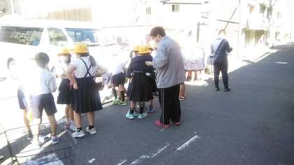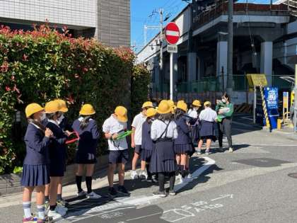 4年生は地域を周り、タブレットを使用して「安全マップ」を作成しました。フィールドワークをしながら、改めて危ない交差点や道路を確認することができました。