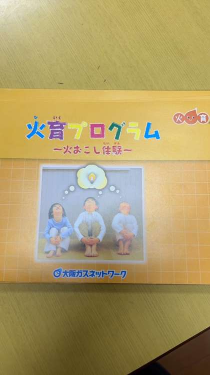大阪ガスネットワークの方に来ていただき、「火育(ひ いく)プログラム」の火おこし体験をしました。