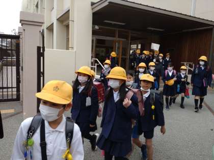 話し合いの後、集団下校をしました。
