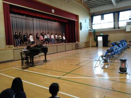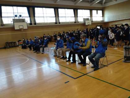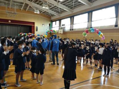 全校児童集会で、「見まもり隊の方へのありがとう集会」をしました。