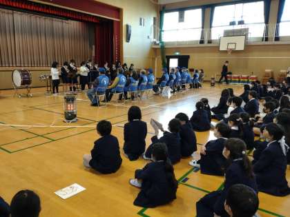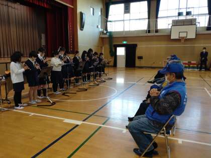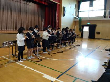 次に、音楽クラブが、「アイデア」をリコーダーで演奏し、「ドラえもん」の合奏もしました。