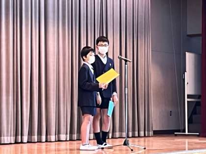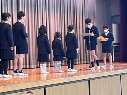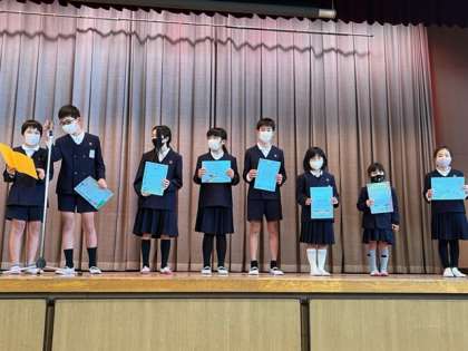 本日の児童朝会では、毎日の清掃活動をがんばっていた学級へ環境委員会から表彰がありました。