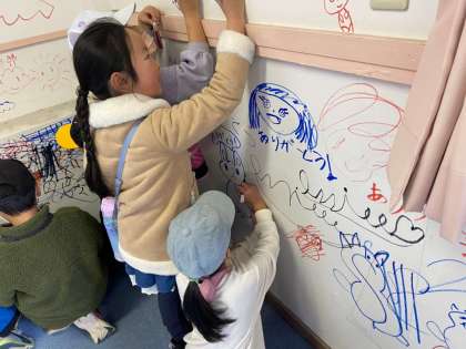 長きに渡って活動してきた教室に、ありがとうという思いを込めて、楽しくお絵かきをしました。