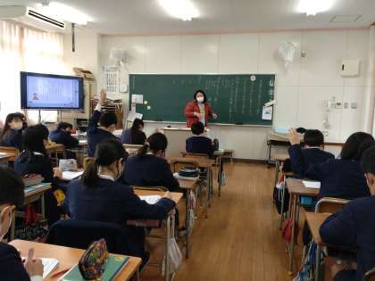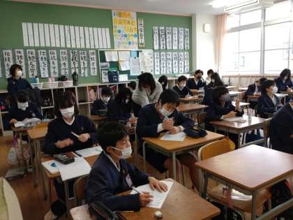 6時間目に大正東中学校の先生方が、6年生の授業を参観に来られました。