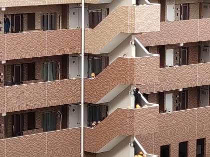 年に1回、隣接する高層マンションの4階〜6階への避難訓練を実施しています。