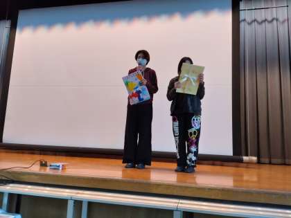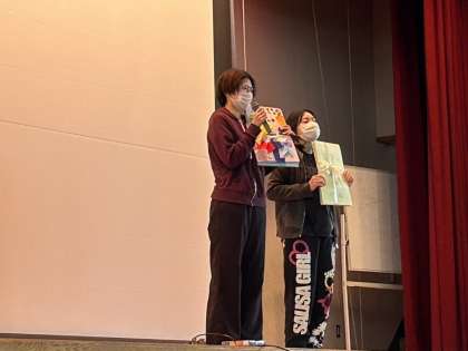 感謝の気持ちを込めて、全校児童で書いたお手紙を、調理員さんに手渡しました。