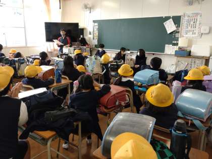 新しい地区分団長を決め、6年生に感謝の気持ちを伝えました。