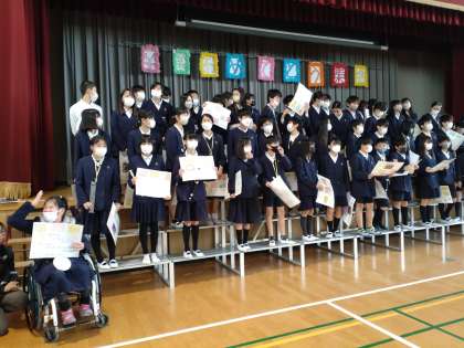 6年生は心のこもったプレゼントを受け取り、とても嬉しそうです。