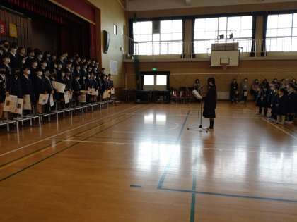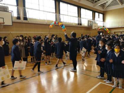 在校生代表児童のあいさつの後、6年生が退場しました。