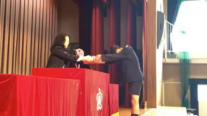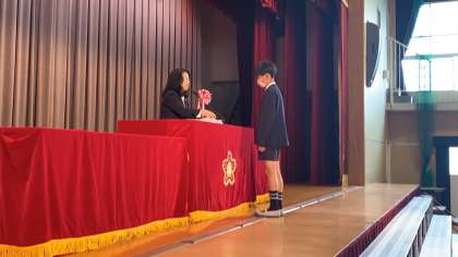 5年生の代表児童に修了証が手渡されました。