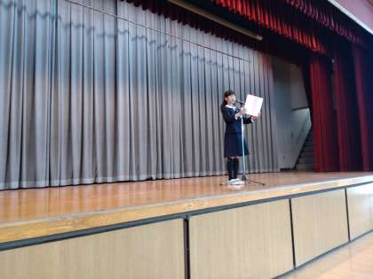 先ずは、6年生の代表児童が年度始めにあたって、自分自身が頑張りたいことなど、決意表明をしました。