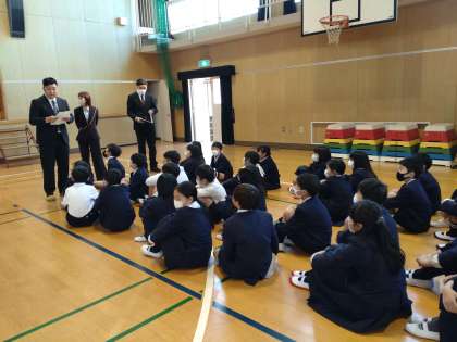 新担任等、担当者の発表があり、3年生と5年生は、体育館と多目的室に別れ、クラス発表をしました。