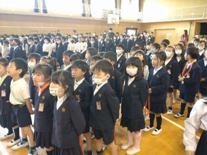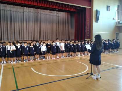 1年生が入場し、児童代表が歓迎のあいさつをしました。