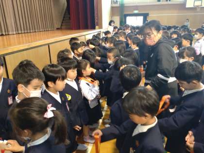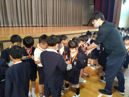 2年生から、朝顔の種入のペンダントをプレゼントしてもらい、嬉しそうでした。