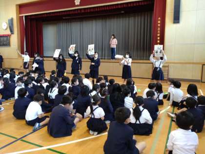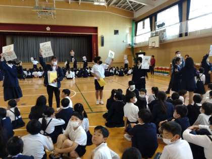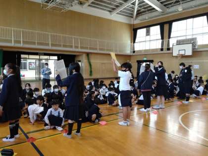 縦割り班での集会の練習をしました。