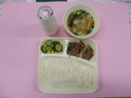 今日の献立は「プルコギ、トック、きゅうりとコーンの甘酢あえ」でした。
