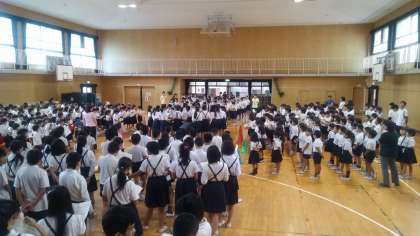 毎月第3木曜日は音楽集会をしています。今月のうた「君をのせて」を歌った後、「トーンチャイム」という、新しい楽器の紹介がありました。音楽クラブの児童が、美しい音色で、「ふるさと」を演奏してくれました。