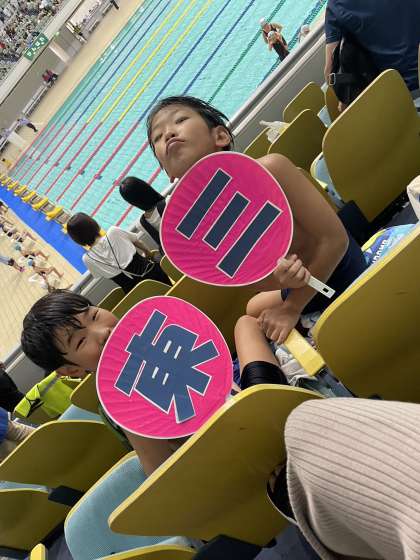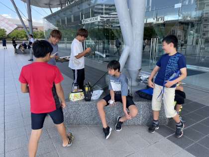 午前の部が終わり、お昼休憩中で、6年生がアップに行ってます。