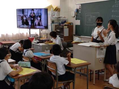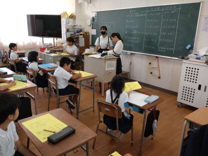 縦割り班で土曜参観で行う「お店めぐり」の準備をしました。