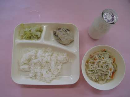 今日の献立は「かつおのガーリック風味焼き、にゅうめん、はくさいの甘酢づけ」でした。