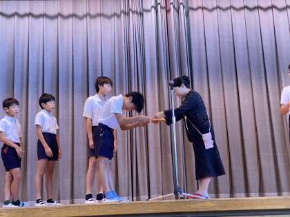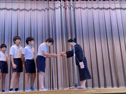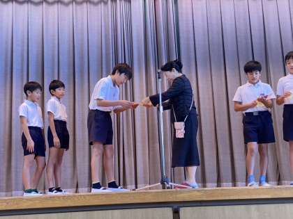今日は、8月に実施された水泳記録会に参加した児童に、記録証を渡しました。