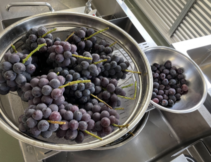 今日の給食に出ているぶどうは、「巨峰」という種類で年に1回だけ給食に登場します。