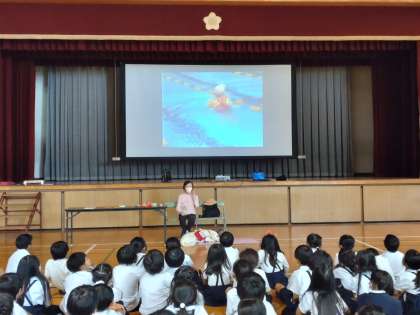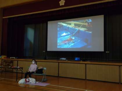 視覚障がいのある方に出前授業をしていただきました。盲導犬と一緒に生活をしておられます。