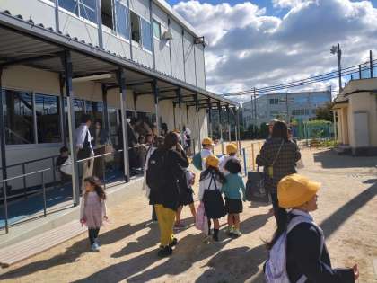 1時間目、各学級で防災の学習をし、その後、保護者への引き渡し訓練をしました。