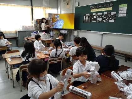 アルミホイルでいろいろな形をつくって、かざりをつけます。
