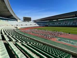 6年生はスポーツ交歓会で、ヤンマーフィールド長居に来ています。