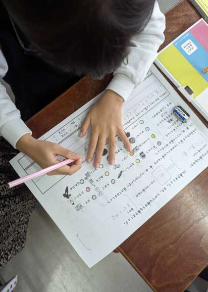 2年生で「食べ物を3つのグループにわけよう」というテーマで栄養教諭と一緒に学習しました。