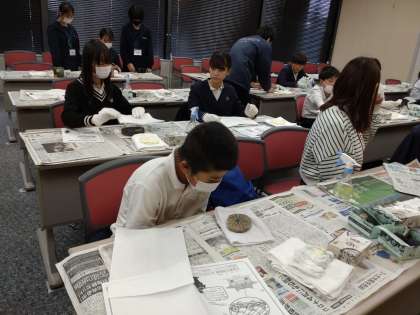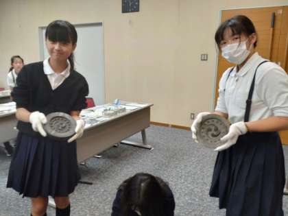 1組の、「むかしの瓦の拓本体験」です。