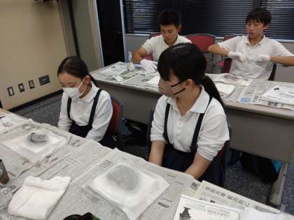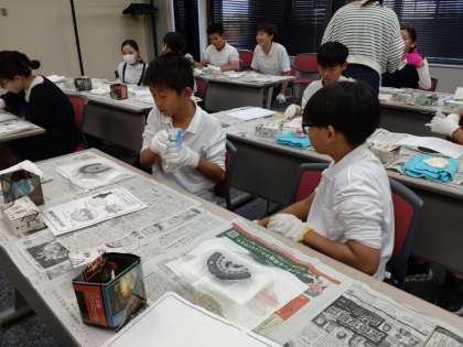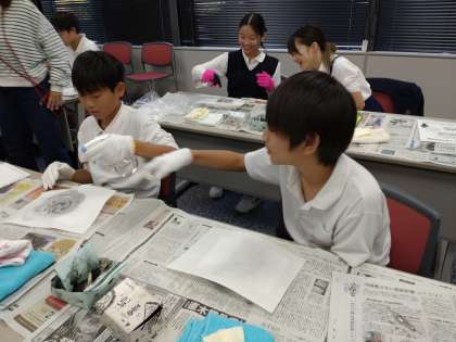 今度は1組の、「むかしの瓦の拓本体験」です。