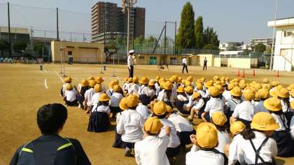 今日は、2時間目〜4時間目まで、大正警察の方々に来ていただいて交通安全指導を行っています。