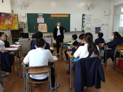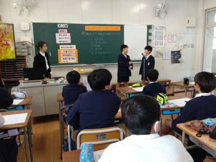 「総合的な学習の時間」で「みんなが◯◯になる笑いの大研究」に取り組んでいます。