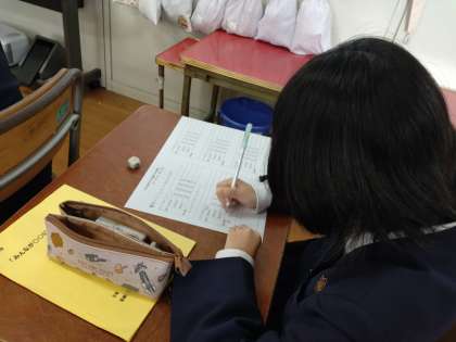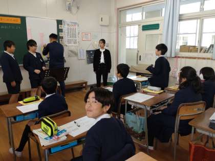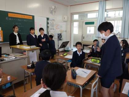 「総合的な学習の時間」で「みんなが◯◯になる笑いの大研究」に取り組んでいます。