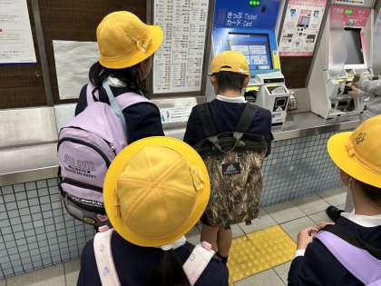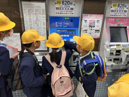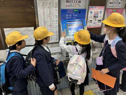グループで活動し、自分で切符を買って西長堀の中央図書館まで行きます。