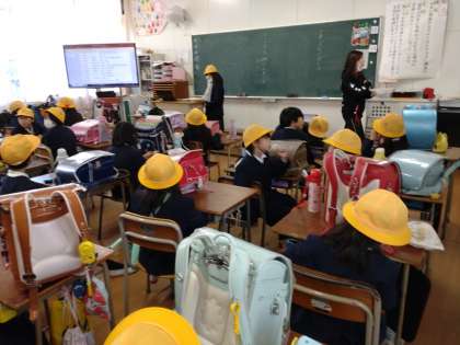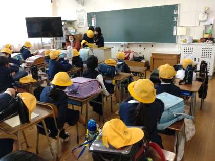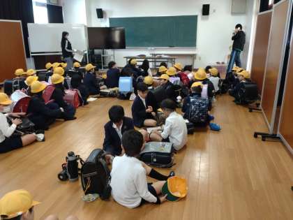 教室で冬休みの過ごし方について話し合ったあと、地区分団の教室に集合しました。