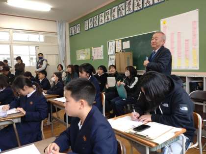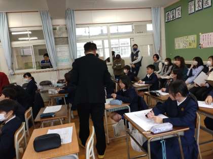 以前「住みます芸人」さんに出前授業に来てもらったことをもとに、「笑い」を研究して発表します。