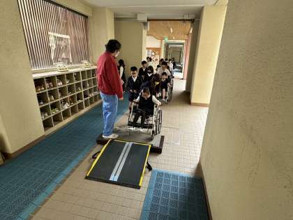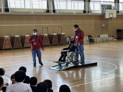 リハビリテーションセンターの方々に来ていただき、車椅子体験をしました。