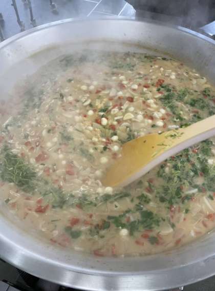 給食は、白みそで味つけたぞう煮です。