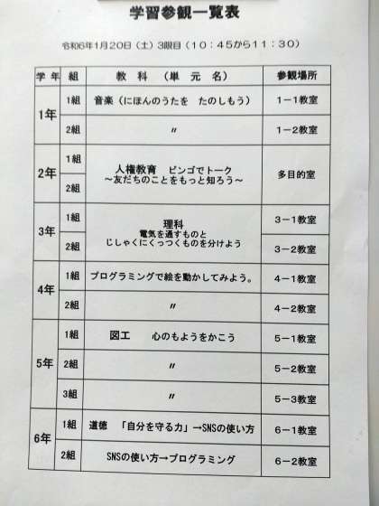1月20日(土) 学習参観