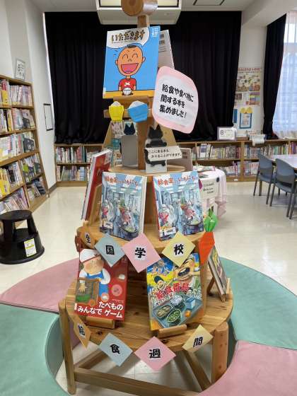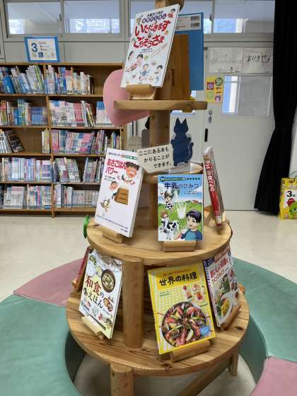そこで、図書室では給食に関する本を展示しているブースを作りました。この機会にぜひ手に取って読んで見てほしいと思います。