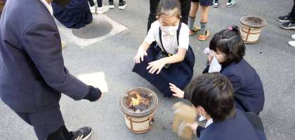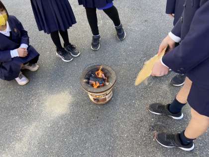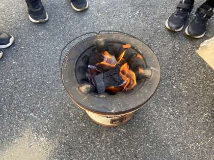 先ずは、七輪で火を起こします。