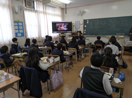 今日は、給食を作っている動画を見ました。