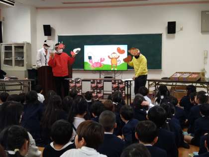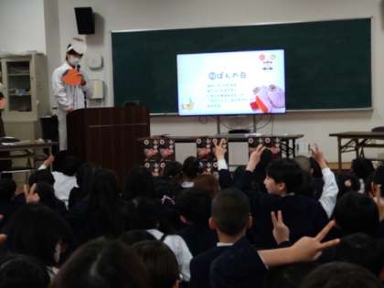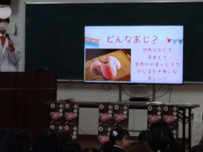 映像や紙芝居で、長野県の話や、「市田柿」のできるまでのお話をしてくださいました。