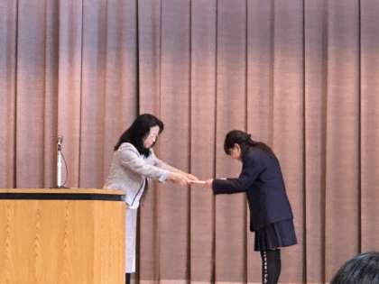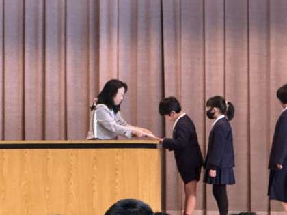 図工展や夏休みの自由研究でがんばった児童たちの表彰をしました。