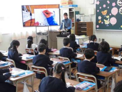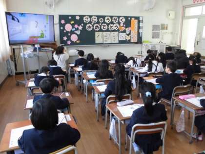 1年生が書き方の学習をしました。まずは姿勢と鉛筆の持ち方から確認しました。みんな背筋をぴんと伸ばして素晴らしい姿勢で準備をしました。書き始めると、鉛筆の持ち方も先生の見本をしっかりと見ながら、1字1字とてもていねいに書くことができました。